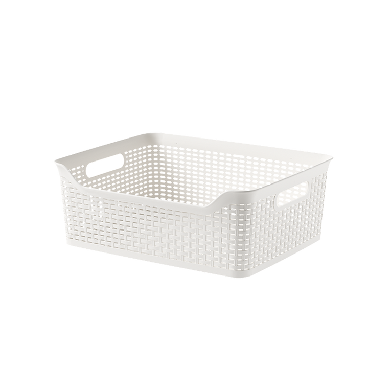 Material: Durable, lightweight plastic with a natural woven look.