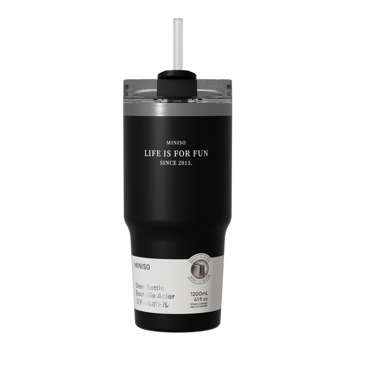 Stay refreshed in style with the Dopamine Color Series Double Wall Straw Bottle. Featuring a sleek black design, it keeps drinks cool and comfortable to hold.