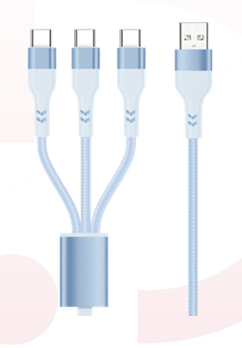 Macaron Series 3-in-1 Fast Charging Data Cable (3 USB-C Ports)(Blue)