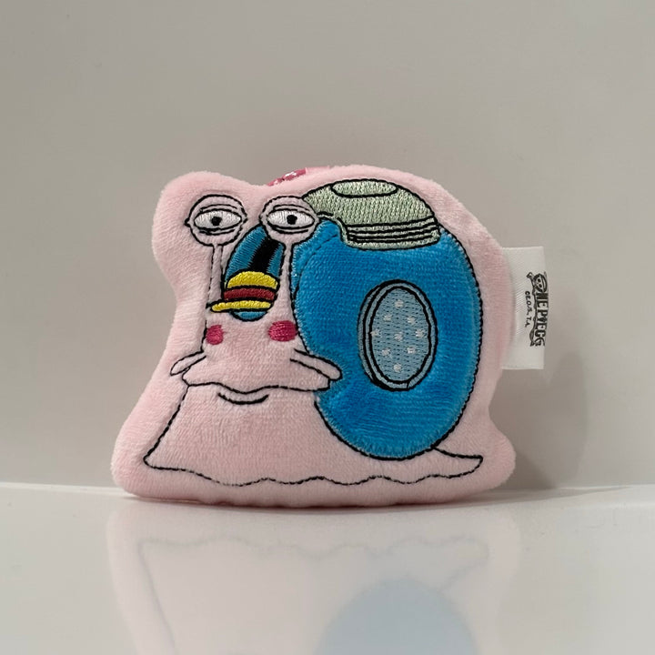 Design: Cute plush Transponder Snail inspired by the Straw Hat Crew’s version.