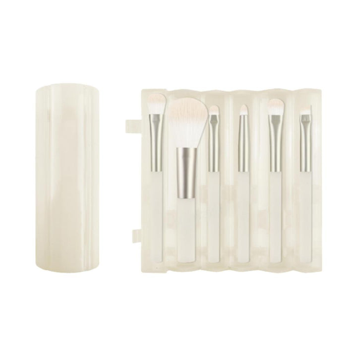 Portable Series Makeup Brush 6-Piece Set with Cylinder Holder (Warm Beige)