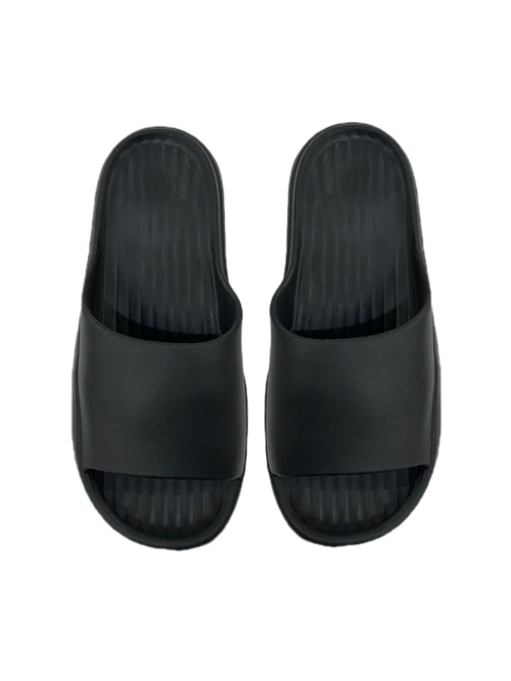 Design: Simple puff-style slippers in classic black for a sleek look.